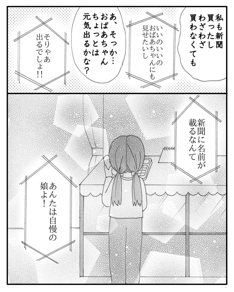 新聞に自分の名前が載ったことが分かり、すぐ病院にいる母に電話をしました。
