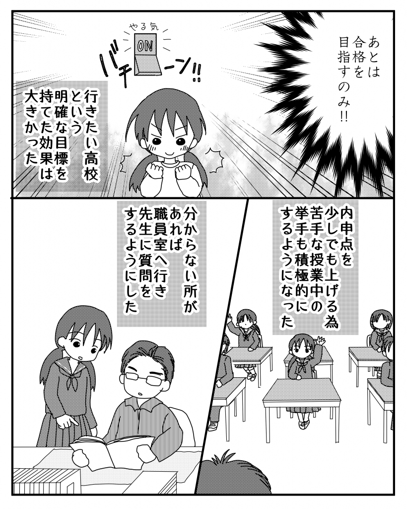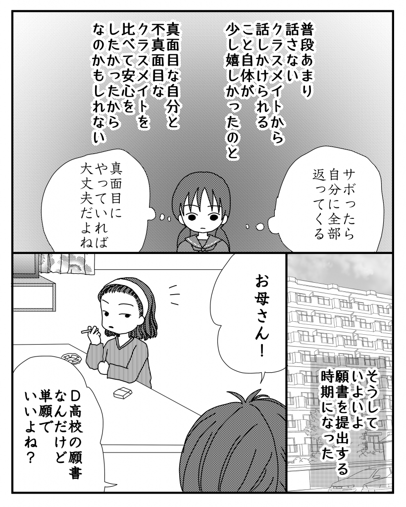 苦手な授業での挙手や質問も、自分なりにかなり頑張っていたと思いますし、クラスメイトと自分を比べて、「真面目にやってさえいれば大丈夫だ」と思っていた部分もありました。