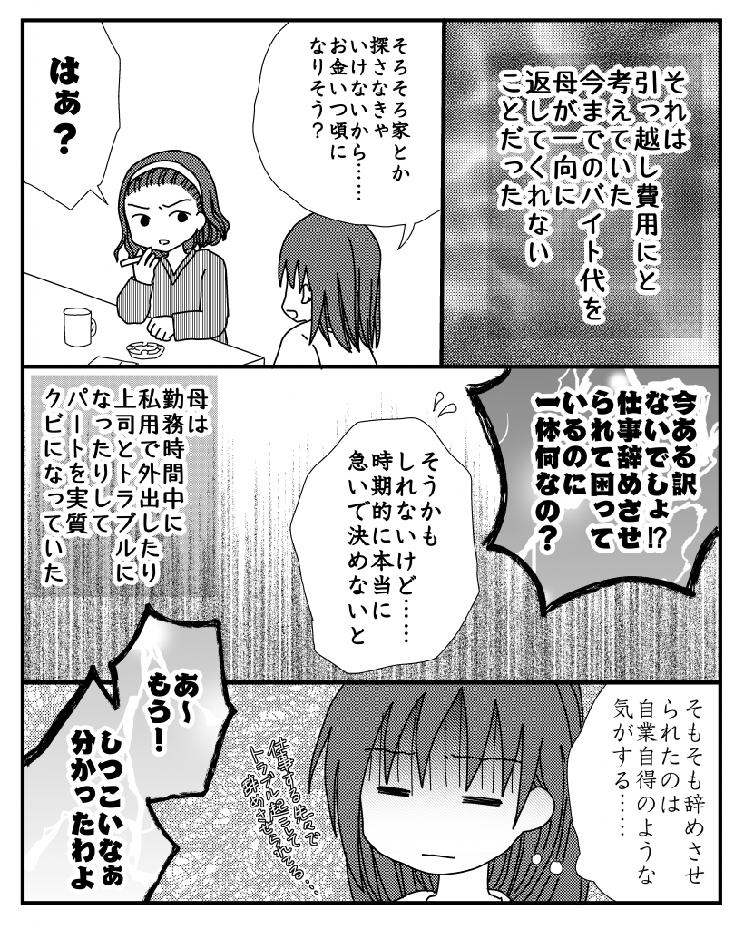母は勤務中に遊びに行くことが度々あり、実質クビになってパートを辞めさせられていました。